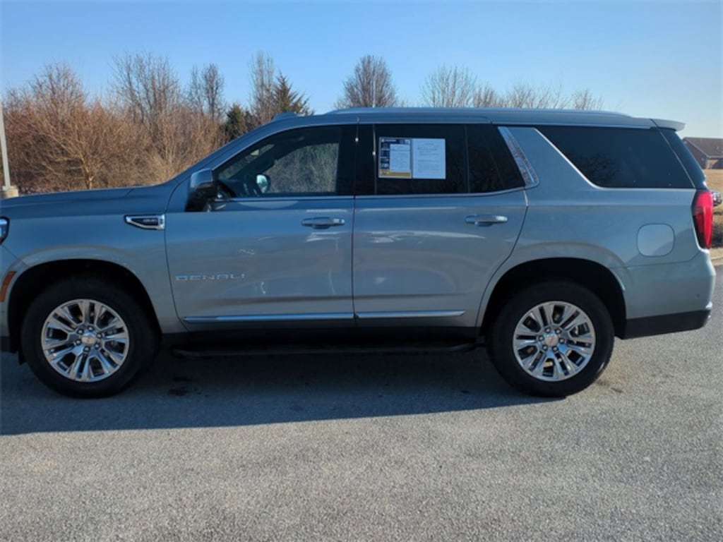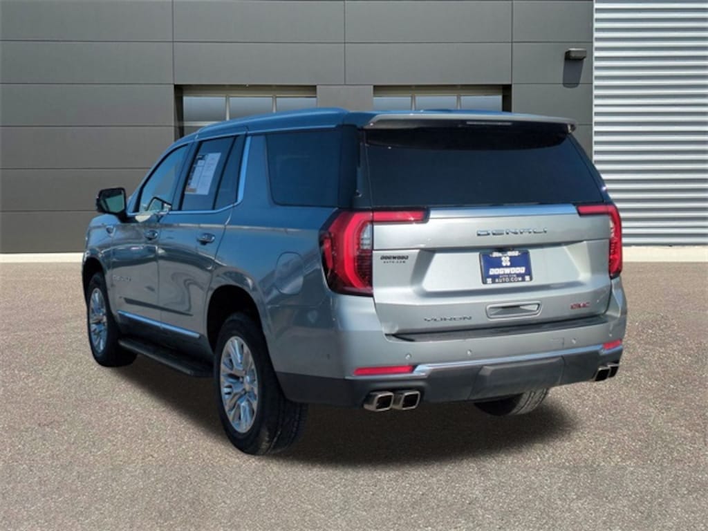 The 2025 GMC Yukon Denali 4WD features a 420hp 6.2L V8, 16.8" vertical screen, Super Cruise, Magnetic Ride Control, 15" HUD, and 22" wheels, 4WD, 10 Speakers, 15" Diagonal Multi-Color Head-Up Display, 3.23 Rear Axle Ratio, 3rd row seats: split-bench, 4-Way Power Driver Lumbar Seat Adjuster, 4-Way Power Front Passenger Lumbar Seat Adjuster, 4-Wheel Disc Brakes, ABS brakes, Adaptive suspension, Air Conditioning, Alloy wheels, AM/FM radio: SiriusXM with 360L, Apple CarPlay/Android Auto, Audio memory, Auto High-beam Headlights, Auto-dimming door mirrors, Auto-dimming Rear-View mirror, Auto-leveling suspension, Automatic temperature control, AutoSense Hands-Free Power Liftgate, Bodyside moldings, Bose 10-Speaker Surround with CenterPoint, Brake assist, Bright Front and Rear Door Sill Plates, Bumpers: body-color, Compass, Delay-off headlights, Deleted OnStar Basics, Driver door bin, Driver vanity mirror, Dual Exhaust System, Dual front impact airbags, Dual front side impact airbags, Electronic Stability Control, Emergency communication system: OnStar and GMC connected services capable, Exterior Parking Camera Rear, Four wheel independent suspension, Front anti-roll bar, Front Bucket Seats, Front Center Armrest, Front dual zone A/C, Front fog lights, Front reading lights, Fully automatic headlights, Galvano Bodyside Moldings, Garage door transmitter, Heads-Up Display, Heated door mirrors, Heated Driver and Front Passenger Seats, Heated front seats, Heated rear seats, Heated steering wheel, Illuminated entry, License Plate Front Mounting Package, Low tire pressure warning, Magnetic Ride Control Suspension, Memory seat, Navigation system: GMC Connected Navigation, Occupant sensing airbag, Outside temperature display, Overhead airbag, Overhead console, Panic alarm, Passenger door bin, Passenger vanity mirror, Perforated Heather and Ventilated Driver and Front Passenger Seats, Perforated Leather Seating Surfaces, Power door mirrors, Power driver seat, Power Liftgate, Power passenger seat, Power Release 2nd Row Bucket Seats, Power steering, Power Tilt and Telescopic Steering Column, Power windows, Preferred Equipment Group 5SA, Radio: 16.8" Diagonal Premium GMC Infotainment System, Rain sensing wipers, Rear air conditioning, Rear anti-roll bar, Rear reading lights, Rear window defroster, Rear window wiper, Remote keyless entry, Security system, SiriusXM with 360L, Speed control, Speed-sensing steering, Split folding rear seat, Spoiler, Steering wheel memory, Steering wheel mounted audio controls, Tachometer, Telescoping steering wheel, Tilt steering wheel, Traction control, Trip computer, Turn signal indicator mirrors, Variably intermittent wipers, Ventilated front seats, Voltmeter, Wheels: 20" x 9" 6-Spoke Polished Aluminum. Odometer is 715 miles below market average! Priced below KBB Fair Purchase Price! Clean CARFAX. CARFAX One-Owner. 4WD